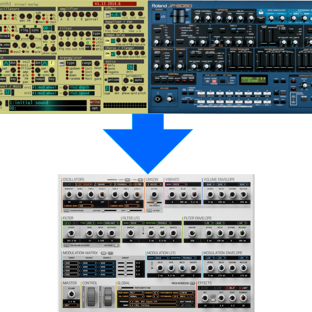 Corona 6.4 introduces seamless integration with two iconic sound sources. The new Synth1 (.sy1) preset import with intuitive drag-and-drop support brings the versatility of this beloved freeware synthesizer directly into your Corona workflow. Additionally, full JP-8000 and JP-8080 SysEx import capability unlocks the legendary supersaw textures and distinctive character of these classic Roland synthesizers.