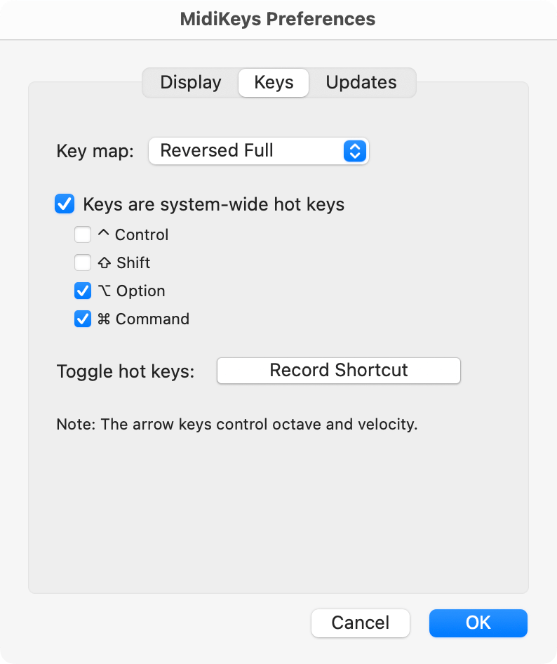 De plus, MidiKeys prend en charge les raccourcis clavier système, vous permettant de jouer de la musique depuis n'importe quelle application lorsqu'ils sont activés. L'interface intuitive et les contrôles réactifs le rendent idéal aussi bien pour les débutants apprenant la musique que pour les professionnels ayant besoin d'un contrôleur de secours fiable.